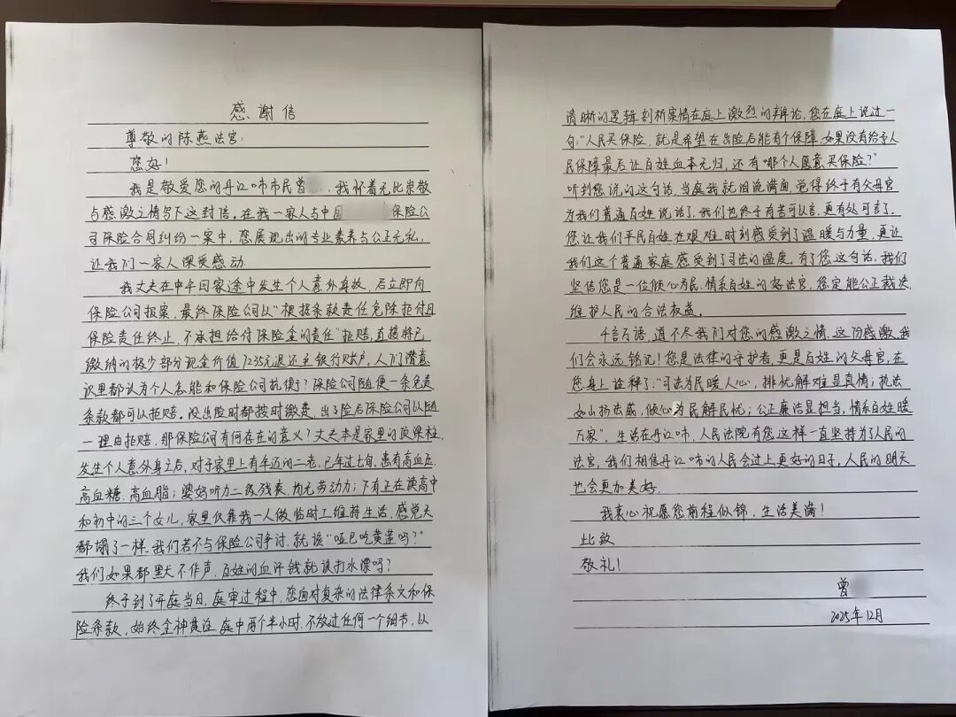 一面锦旗,一封手写感谢信,承载的不仅是当事人的谢意,更是一份沉甸甸的责任。今后工作中,丹江口法院将持续坚守“如我在诉”的司法初心,以优质高效的司法服务,努力让人民群众在每一个司法案件中感受到公平正义,切实用实际行动书写司法为民温暖篇章。