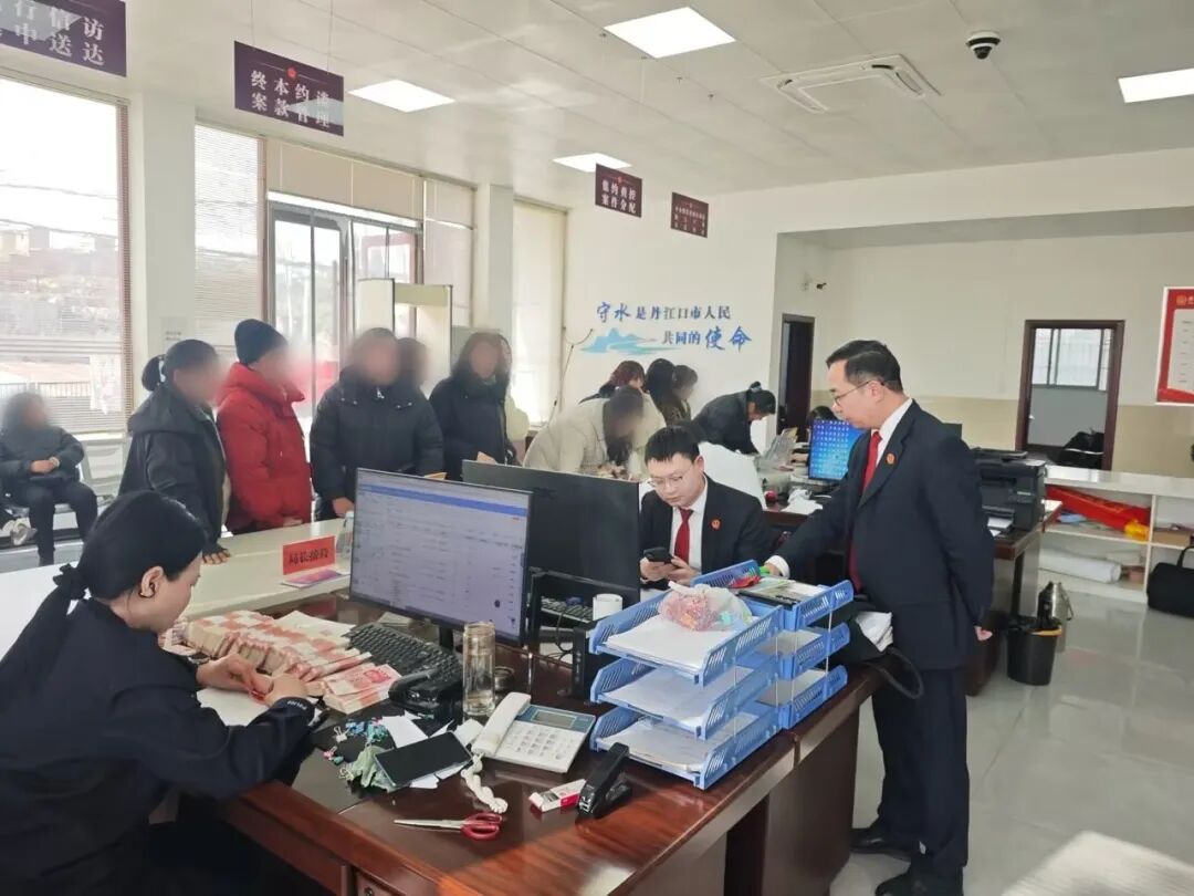 现场二:湖北某锂业有限公司长期拖欠汪某等52名员工工资,经丹江口市劳动人事争议仲裁委员会仲裁裁决后,该公司仍未按期履行付款义务。汪某等人向法院申请强制执行后,执行局迅速启动涉民生案件绿色通道,一方面约谈企业法定代表人,释明拒不履行生效法律文书的法律后果;另一方面主动对接园区及主管部门,全面核查企业财产线索,督促企业积极筹措资金。最终,该企业向法院缴纳40万元案款,执行干警第一时间将拖欠的劳动报酬悉数发放到 52 名员工手中,让劳动者在新春前夕切实感受到司法的力度与温度。